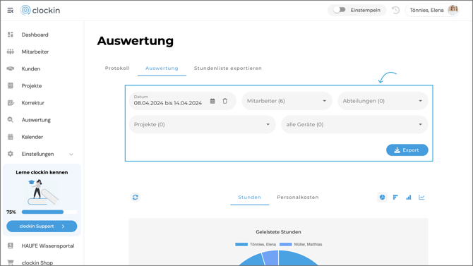 Die Auswertung in clockin bietet dir die Möglichkeit, spezifische Informationen auf einen Blick grafisch anzeigen zu lassen. Hier zeigen wir dir alles, was du dazu wissen musst!