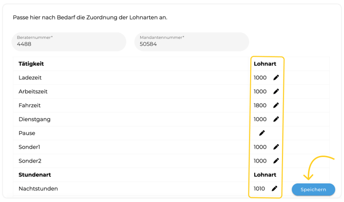 ➡️ Dann lies unseren Artikel: Wie konfiguriere ich Lohnarten, Tätigkeiten und Projekte für den DATEV-Export?