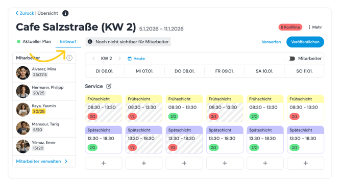 In diesem Artikel erfährst du, wie du einen veröffentlichten Schichtplan im Nachhinein noch anpassen kannst.