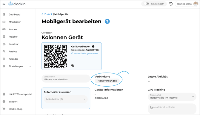 Dementsprechend wird bei der "Verbindung" danach "nicht verbunden" stehen. Stattdessen taucht nun der Geräte QR-Code wieder auf, mit welchem du dich mit dem Mobilgerät verbinden kannst.