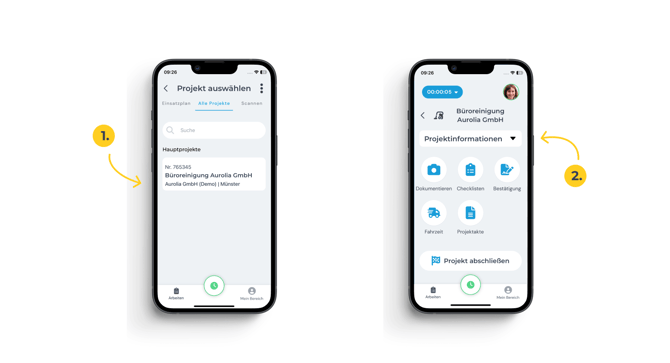 - Wähle in der App das gewünschte Projekt aus.