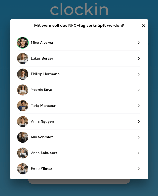 Diese Methode ist ideal, wenn du als Admin alle NFC-Chips oder Karten vorbereiten und bereits fertig verknüpft an deine Mitarbeiter ausgeben möchtest. Dein Team muss dann keine Ersteinrichtung mehr vornehmen, sondern kann den Chip sofort zum Stempeln nutzen.